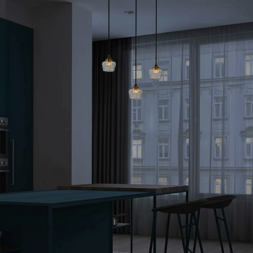 面取りによる陰影の美しさは、シンプルな空間にこそ映えるもの。あえて装飾を抑えた場所に吊るすことで、その魅力がより際立ちます。玄関、キッチン、吹き抜け、階段下など、空間にひとつのリズムを与える灯りとしておすすめです。