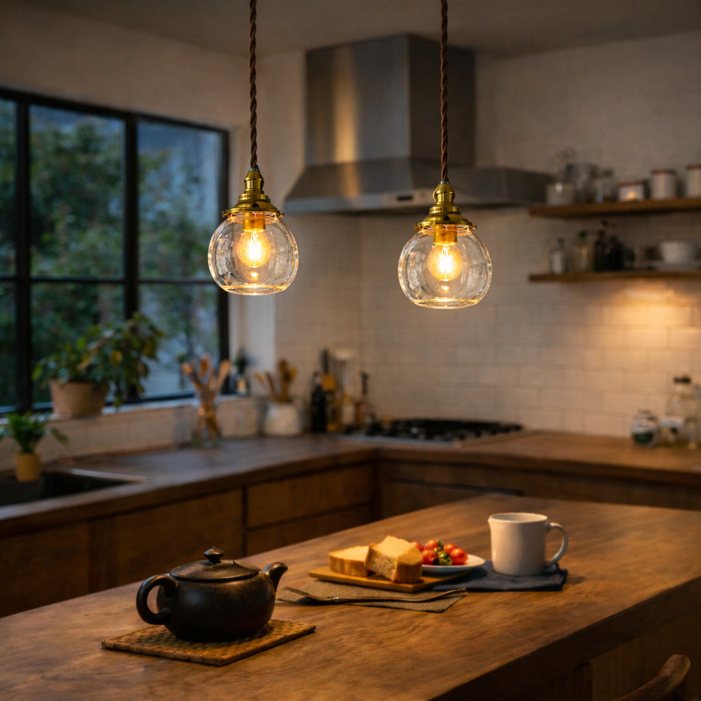 「球」シェードは、柔らかな丸みと透き通るガラスが特徴のペンダントライトです。