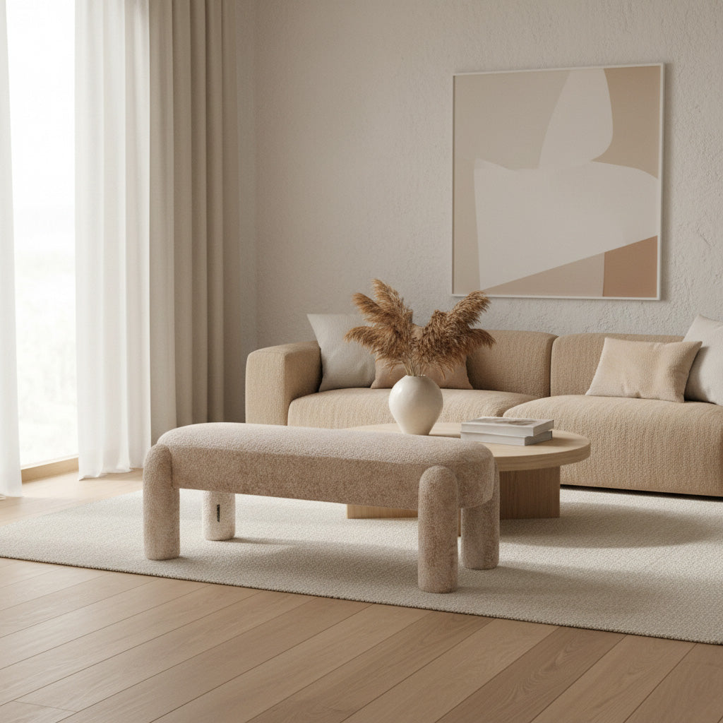 ソファ「ホリー」は、エレガントで快適な家具で、シープネイチャーの生地がインテリアに温かみのあるナチュラルな雰囲気を添えます。