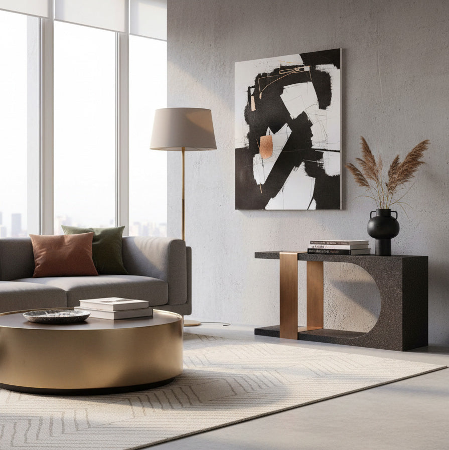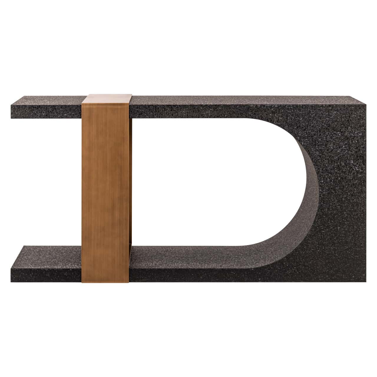 アレクサンダー・ジョーンズ・デザインのコレクションから生まれたこのバーゼル・ウォールテーブルは、洗練された鉄の素材がモダンな豪華さを醸し出しています。